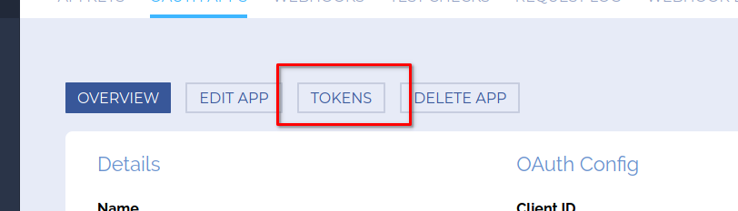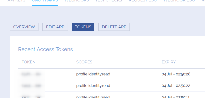 Click the application you want to view tokens for
