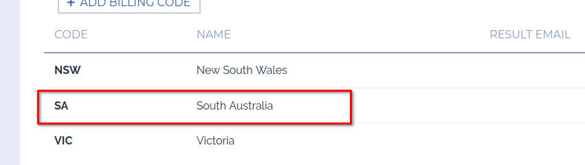 Click on the billing code to edit