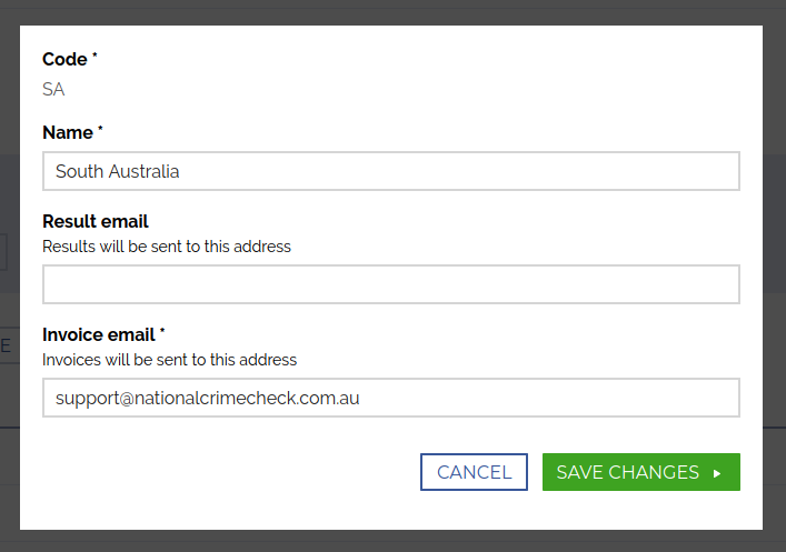 -- Email address to send invoices for this code.