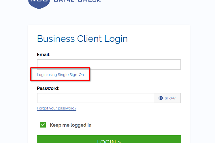 - On the National Crime Check home page click the Login button on the top-right