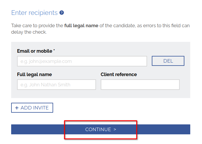 - You will be directed to the Invite Details screen to continue the process