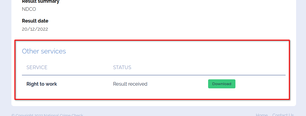 To download a check result, the check needs to be in the Processing response received status, and the result needs to have not yet expired. Note that results expire after three months and cannot be downloaded after this time.