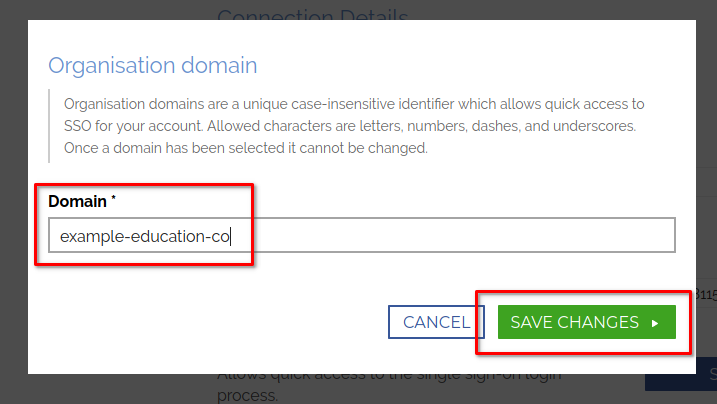 - Decide an organisation domain and enter this into the Domain field, then click the Save Changes button
