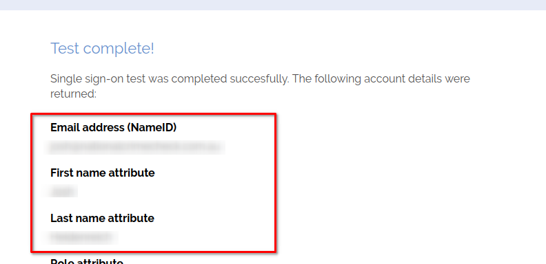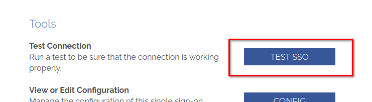 - You will be requested to log in using your SSO providerThis authentication won't actually be applied to your session; it's only a test