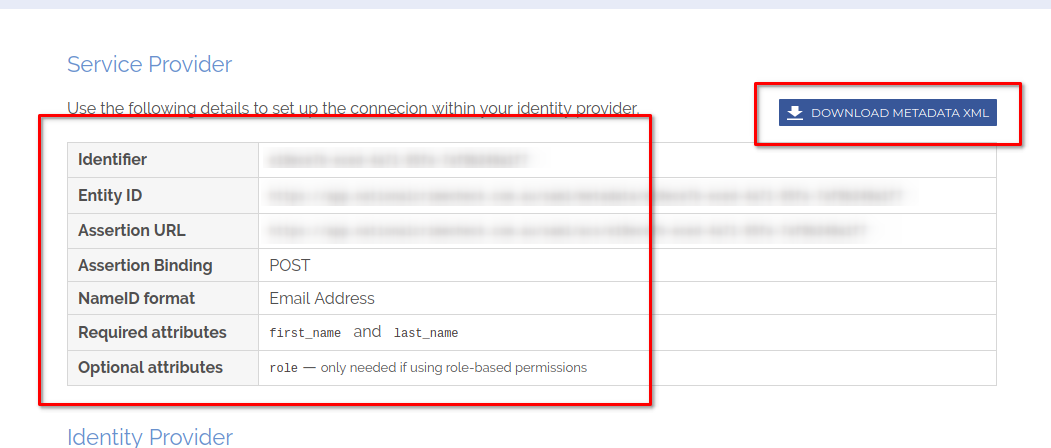 - The Identity Provider details can be changed if required