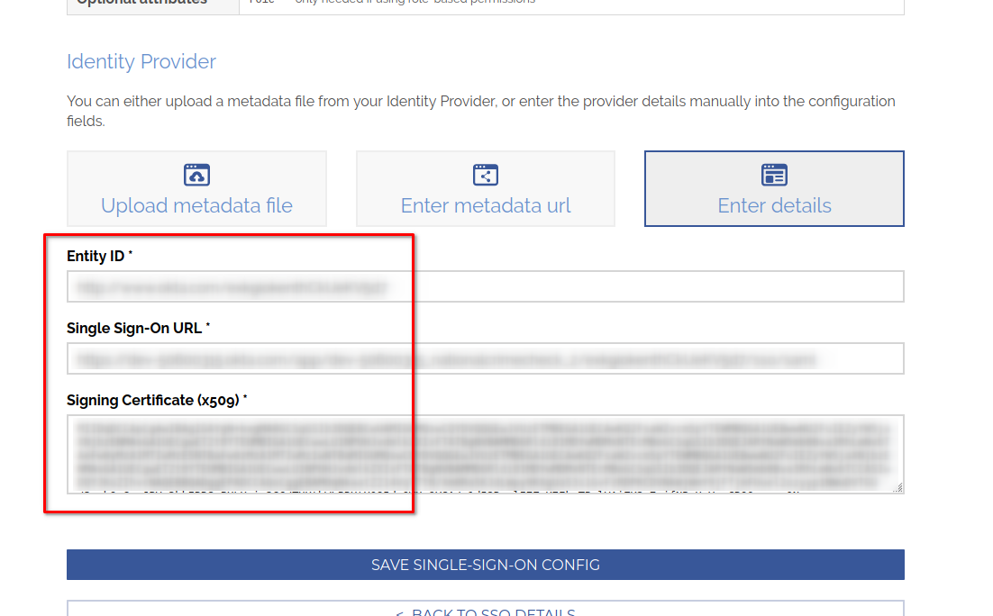 - When finished editing, click the Save Single Sign-On Config button