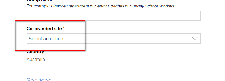 - Choose the co-branded site for your group
