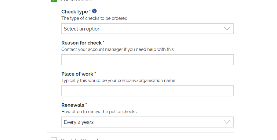 - Choose your right-to-work check service details (if selected)