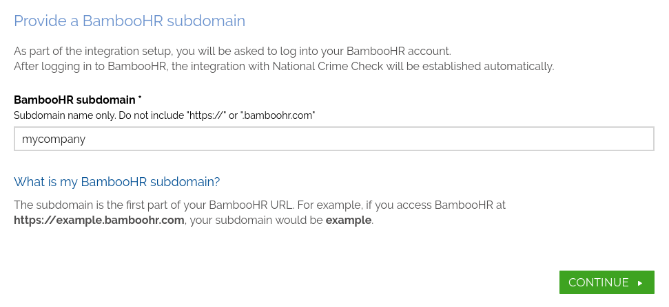 - Provide your BambooHR subdomain