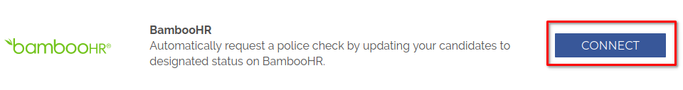 - Click the Connect button to link your accountYou can now order police checks from directly within BambooHR.