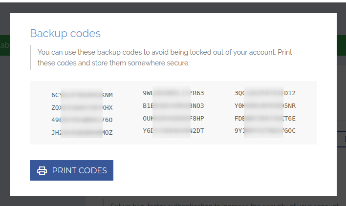 Backup codes