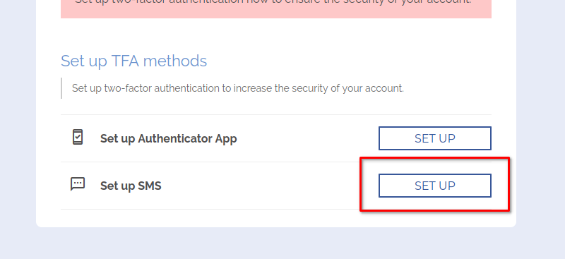 When logging in, we will send you a SMS with a code. Enter the code into the field to continue.